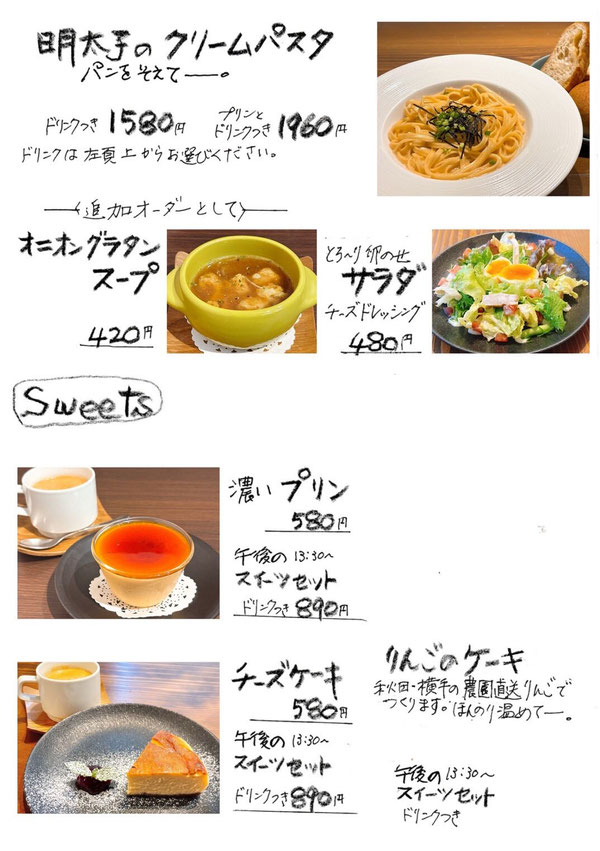 ドリンクつき1120円 プリンとドリンクつき1500円
